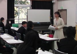 1月12日(木)6時間目のLHの時間に、2年次生対象に人と心のコンサルティング トラスティ 代表 山脇 文子氏を講師におまねきして「学校・家庭・職場・地域で好感を持たれるマナー」の振り返りが行なわれました。講師から「好かれる人はどんな人だった?」という質問に生徒から「笑顔 礼儀正しい すがすがしい」などの意見がありました。