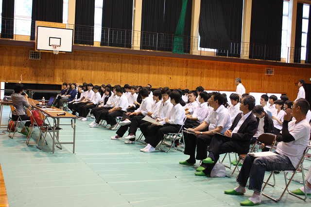 6月14日(日)、PTA総会を行いました。この日には昨年の取組や今年度の行事報告の他、「安全に使おう携帯・スマホ」と題して、県教育委員会人権教育課から講師をお迎えし、生徒・保護者が一緒になり、我々を取り巻くネット社会の諸問題を学習しました。 お話のなかでは、身近に起こったトラブル等を紹介していただき、被害から身を守るためにはどのように対応しなければならないかやインターネットや携帯端末を安全に安心して使うためには家族でルールを決めることが大切であること等を親子で学ぶ機会となりました。