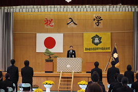 平成26年4月8日(火)13:00より、ご来賓としていの町副町長さん、校友会長さん、PTA会長さん等の出席のもと、14名の入学式が行われました。穏やかな天気で、生活環境コースの生徒が育てたパンジーが会場を華やかに染め、厳かな入学式となりました。池校長先生のことばを緊張ながらも真剣に聞いている新1年生の姿がとても輝いていました。