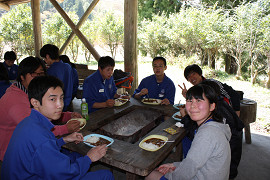 少し心配した野外炊飯では、飯盒のご飯もおいしく炊け、牛肉たっぷりのカレーライスの味も大変好評で、みんなおなか一杯になり、大満足の昼食をとることができました。天気にも恵まれ、有意義な1日となりました。1年生の皆さんお疲れさまでした。これから3年間みんな力を合わせて頑張りましょう。