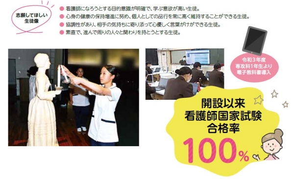 ・看護師になろうとする目的意識が明確で、学ぶ意欲が高い生徒。