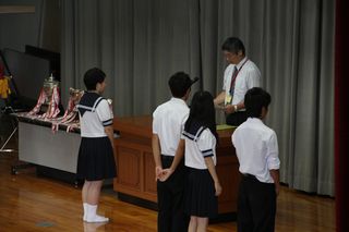 7月19日午後から一学期終業式を行いました。終業式後、クラブ活動の伝達表彰を行いました。
