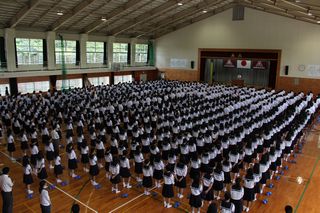 平成24年8月27日「2学期始業式・ALT着任の挨拶」の様子