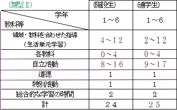 1日あたり2単位時間、週あたり 訪問日数は、生徒の実態に応じて 設定する。 |
