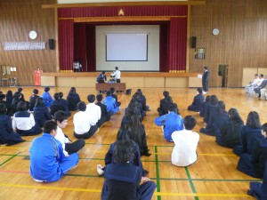 その他の生徒は、体育館でDVD視聴をしました。みんな、真剣に学習して