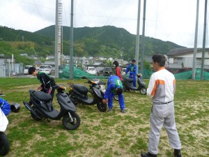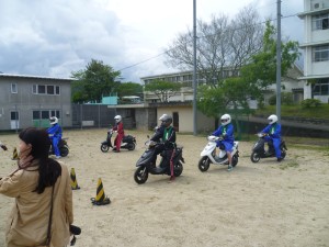 警察の方からの説明などをうけ、原付バイク通学生は実技講習(グラウンド)
