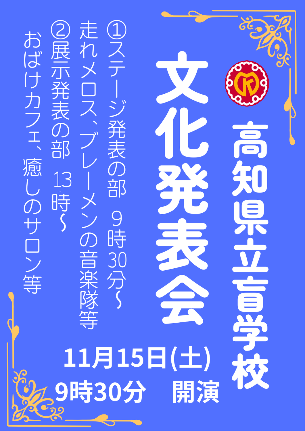 高知県立盲学校の文化発表会のお知らせです。詳しくは以下をご覧ください。