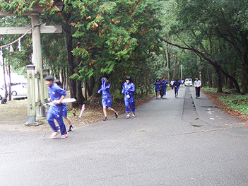 浜の清掃ボランティア活動のクリエコ活動の終了後に、緊急地震速報と大津波警報を流し一路学校を目指して、生徒と教職員が避難訓練を行いました。