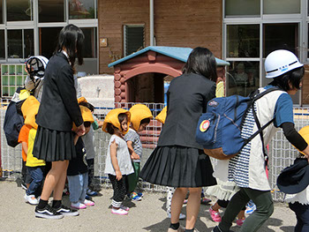 中学生と高校生は保育園児の避難介助も行い、生徒からは