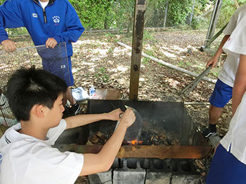 5月15日(水)、午後から全校生徒・全教員で家庭にあった食材を持ち寄っての炊き出し訓練を行いました。ある組は、学校にある半分に切ったドラム缶を使い、スミの火おこしに挑戦。四苦八苦しながらも、なんとか自分たちで火をおこしBBQを楽しみました。いざという時に備えて、あるもので何とかするという意識を持って、全員で取り組み、楽しみながら防災意識を高めました。