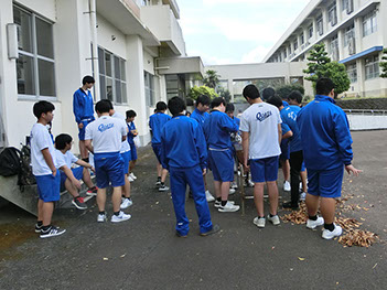 今回は、本校の防災活動や学校の取組、黒潮町の防災対策等について学ぶことと併せて、生徒間の交流のために訪問してくださいました。前日は「世界津波サミット」が開催された会場周辺の記念植樹や大会記念碑、町地区の津波避難タワー、(有)ジーンズ工房大方、入野海岸の散策等に職員が案内しました。