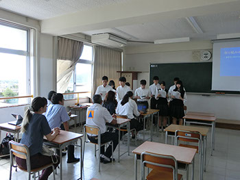 活動を通して交流を行い、生徒は留学生からの質問にも、自分たちが持っている知識から一生懸命に考え、応えようとする姿が見られました。生徒は「思ったように伝えられなかった。」「もっと英語を勉強したい」と感想を述べていました。
