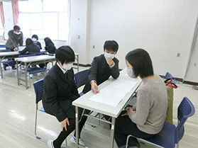 2月1日(火)にはそのアイデアを社会人の方とディスカッションをし、よりよいアイデアに磨き、2月15日(火)にはアイデア発表会を行いました。当初憶測だけで提案をしていましたが、徐々に収集した情報を根拠に思考する力が身に付いてきました。さらに、自分の視点だけで考えるのではなく、行政や町民の視点から考えることができるなど成長が見られました。