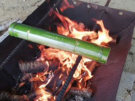 竹ごはんとポリ袋料理に挑戦し、レシピを確認しながら作りました。
