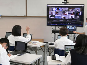 8月24日(火)岡山県のAMDA中高生会と、黒潮町の中学・高校(佐賀中学校、大方中学校、大方高校)がオンラインで交流し、本校からは地域創造コースの2年生4名が参加しました。