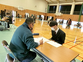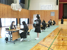 インタビュー後、生徒からは「仕事を行っていくうえで、良い信頼関係を構築することが大切であることが分かった。」や「人の話を聞きながら、メモを取る難しさを感じた。」などの声があがっていました。