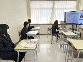 12月23日(水)にZoomでコンソーシアムの委員さん、運営指導委員の方をお招きして「後輩へのメッセージ」ということで、1、2年生を対象に発表会を開催しました。「在校生が3年生になった時、同じ後悔をしてほしくないので、今からやれることを1つでも考えてほしい」という願いのもと行われました。