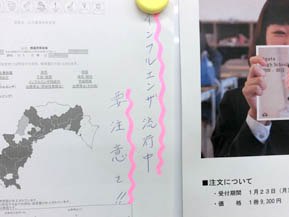 職員室の掲示板にインフルエンザなどの流行情報が貼られてます。