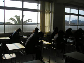 菅平より雪が降っている大方です。3年生は今日から卒業試験。