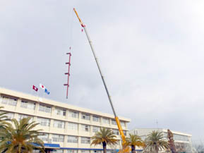 朝から大きなクレーン車がきてEVの骨組みを設置していました。