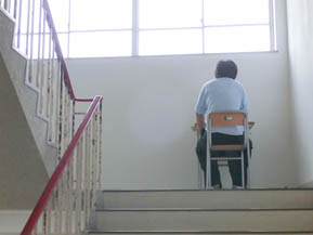 2階から3階へ向かう途中の踊り場に机と椅子が放置されていたので