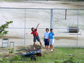 整備中のソフトテニス部(きょうは少ない)。この前の日曜の試合が