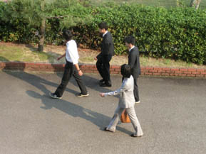 放課後。謎の一団がどこかへ向かってました。何かのけいこというか