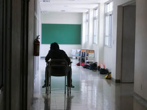 4時間目の試験は生徒も監督の先生も空腹ともたたかっています。