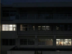 北校舎から南校舎をいていると、教室が1つと職員室にだけ明かり。