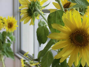 職員室前のひまわり。遅咲きの。