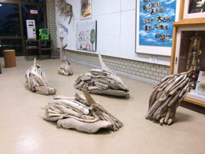 流木でできたイルカだそうです。年内は玄関ホールで泳いでいます。