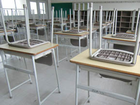 3年生の教室は掃除もバッチリ、ワックスもバッチリで迎える