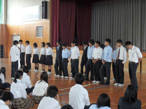 今日は壮行式。生徒会長は6時間目にメモを見ながら挨拶の練習を