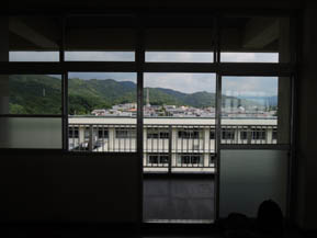 試験中の廊下と授業中の北校舎と昨日なにかあったらしい錦野団地。