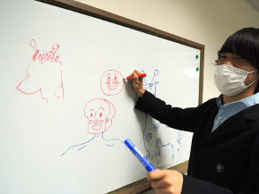 「お土産買うが忘れちょった」と笑顔で言ったかず志は、うまく書けた