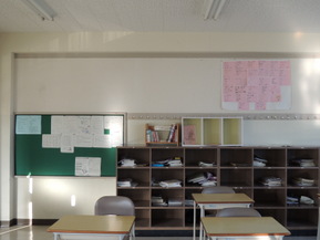 1年生の教室には恒例の自己紹介カードが貼られていました。