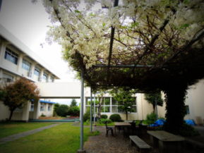 きれいに花が咲いている藤棚も、そこに空き缶や空き容器が
