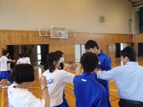 1年生は体育館でなんかしてます。指でフリスビーを運んだり