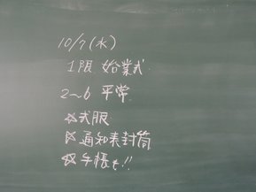 生徒はあすから秋休み。来週水曜日に式服で登校しましょう。