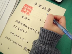一人ひとりに一枚いちまい手書きで用意されている卒業証書。