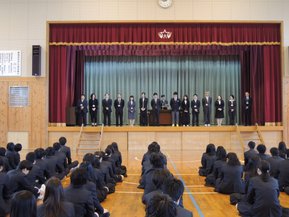 今年は先生の異動が多かったのでステージいっぱいに並んでいます。