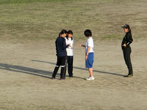 雨の日が続くので晴れている日にじゃんけん練習していた陸上部。