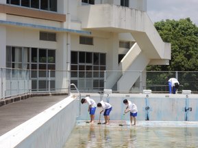 3学年とも体育の時間はプールの清掃。入る気はしない程度に