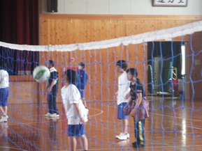 1年生は、なぜだか突然にスカッシュバレー大会を開催。
