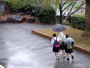 今日みたいな日は雨具の用意もないので、濡れながら下校している
