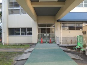 生徒昇降口の耐震等工事がはじまっていて、1階も2階も通行禁止に