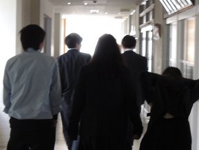 校内の危険そうな場所をチェックしながらの移動。耐震化はして