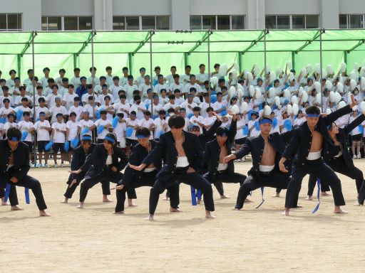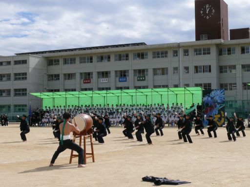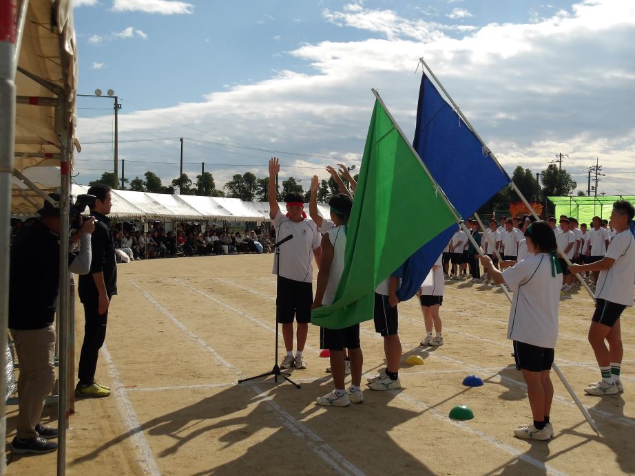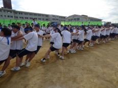 | 雨天のため、予定より1日遅れの体育祭です。今年の総合優勝は緑でした。 | |||