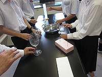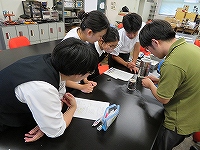 | 8月3日(日)に、「中学生科学実験講座」を開催しました。今年度は化学分野と物理・地学分野の2講座で実施しました。化学分野では、イチゴ・パイナップル・バナナの香りをもつエステルの合成実験で、高校化学の内容について体験しました。物理・地学分野では、楽器や地震の揺れについて調べる中で規則性などを発見する体験をしました。どちらの講座も実験を通して体験的に学ぶことで、科学に対する興味・関心を高める機会にしていただけたのではないでしょうか。来年度以降も実施していきますので、ぜひ多くの中学生の皆さんに参加いただければと思います。