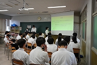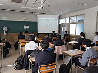 | 3月14日(金)「先輩の話を聞く」を行いました。3月1日に卒業を迎えたばかりの卒業生たちが1・2年生に向けて、自身の進路選択の経緯や学習方法、受験に対する心構えなどを語ってくれました。在校生達は、総合型選抜や学校推薦型選抜、一般入試など様々な受験の体験談を聞くことで、今後の進路実現に向けてやるべきことを見出すことができました。 | |||||